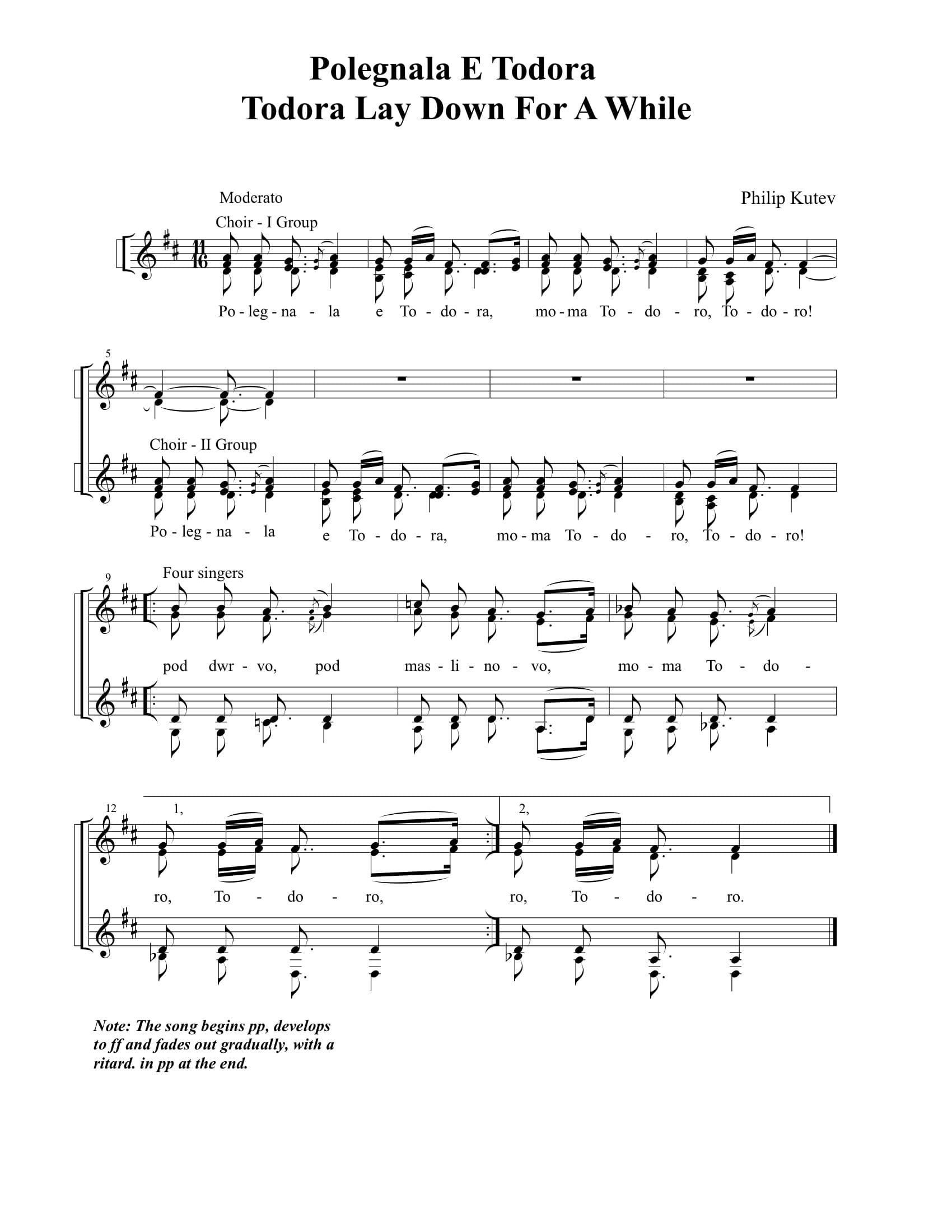 Perhaps the Koutev Ensemble’s most famous number, this Grammy-winning folksong arrangement became the group’s signature tune, rocketing the ensemble to international acclaim nearly 50 years ago. For Bulgarians, Koutev’s gentle love song about a young girl’s romantic dreams was like an unofficial national anthem. Its hallmark unique voicing pitting a small ensemble of four soloists against the entire choir creates a marvelous musical dialogue between them.