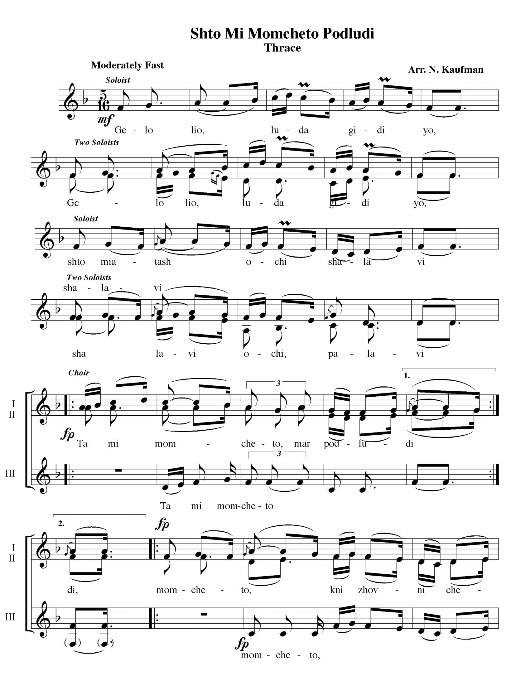 Bulgarian Folk Song Arrangements for Women’s Choir Acapella.