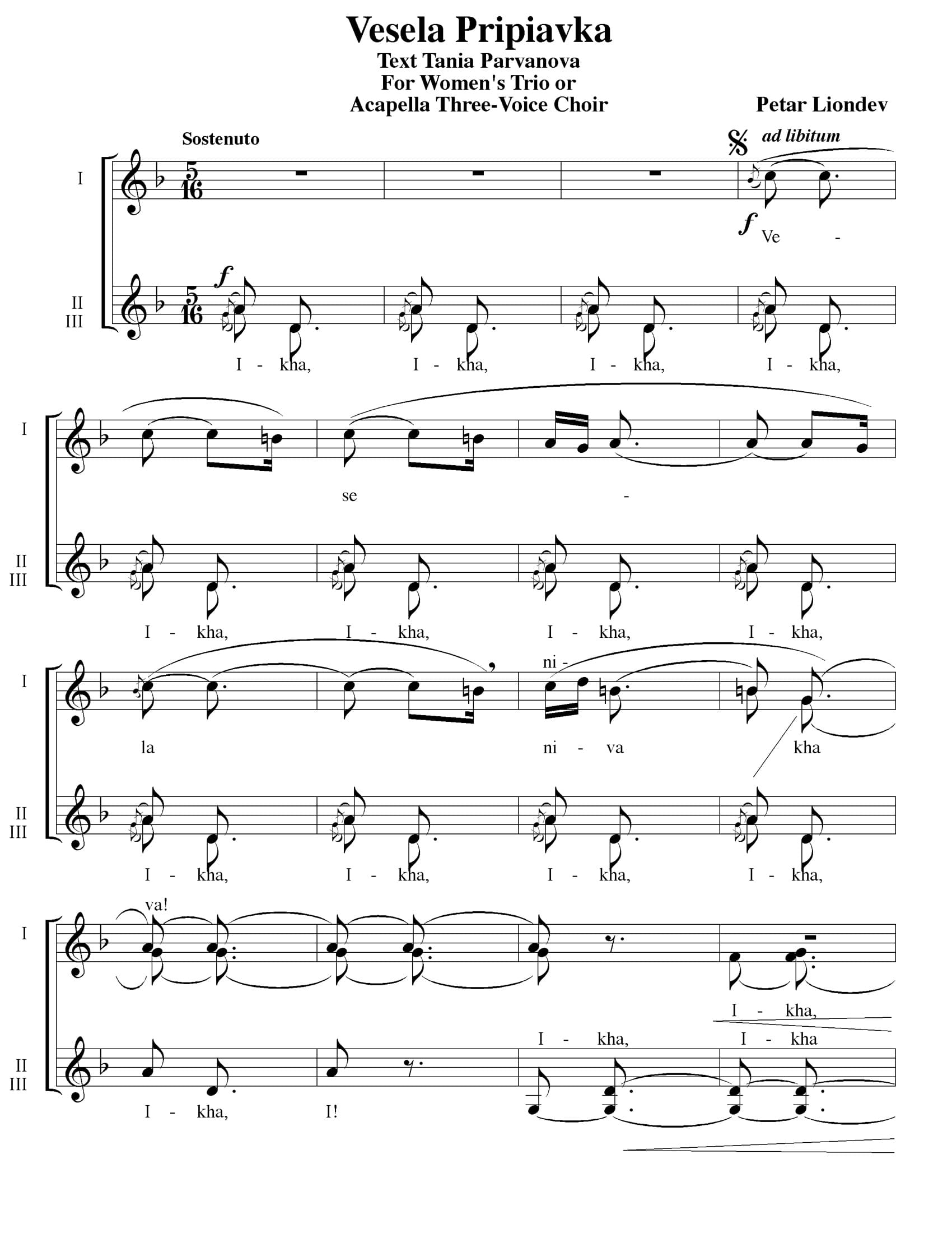 For female trio or 3-part women’s choir Acapella. Text by Tania Parvanova. Transliterated Bulgarian.