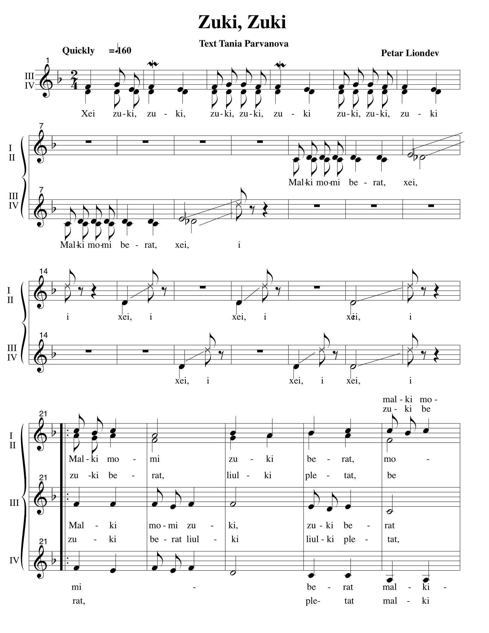For female quartet or 4-part women’s choir Acapella. Text by Tania Parvanova. Transliterated Bulgarian.